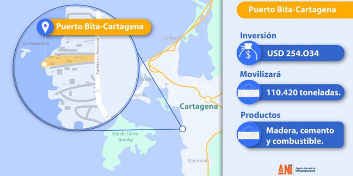 El Gobierno nacional le sigue apostando al desarrollo de proyectos portuarios en el país. Así ocurre con Puerto Bita en Cartagena, un embarcadero, concesionado por la Agencia Nacional de Infraestructura- ANI, que movilizará 110.420 toneladas de carga, entre madera, cemento y combustibles.