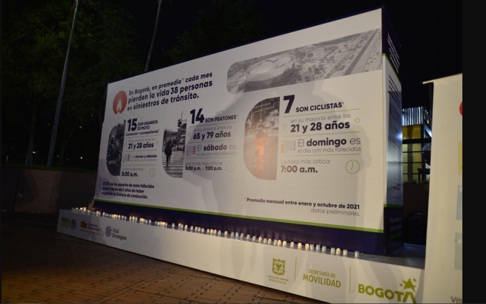 - Con un acto conmemorativo y una instalación ubicada en el Parque Bicentenario hasta el domingo 21 de noviembre, Bogotá rinde homenaje a quienes han fallecido en siniestros de tránsito y a sus familias.