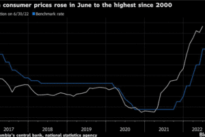 (Bloomberg) — La inflación de Colombia se aceleró menos de lo esperado en junio para permanecer cerca de un máximo de dos décadas, manteniendo la presión...