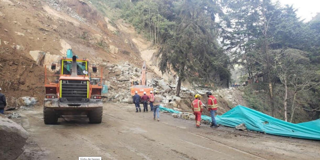 Personal del INVÍAS trabaja en la zona con operarios y maquinaria para remover con celeridad un derrumbe de material sobre la vía a la altura del km 39.La...