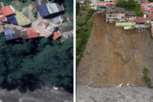 Se ve cómo el rio negro ha afectado las viviendas de al menos 66 familias del barrio Perdices. La situación de emergencia en Guayabetal, Cundinamarca, sigue...