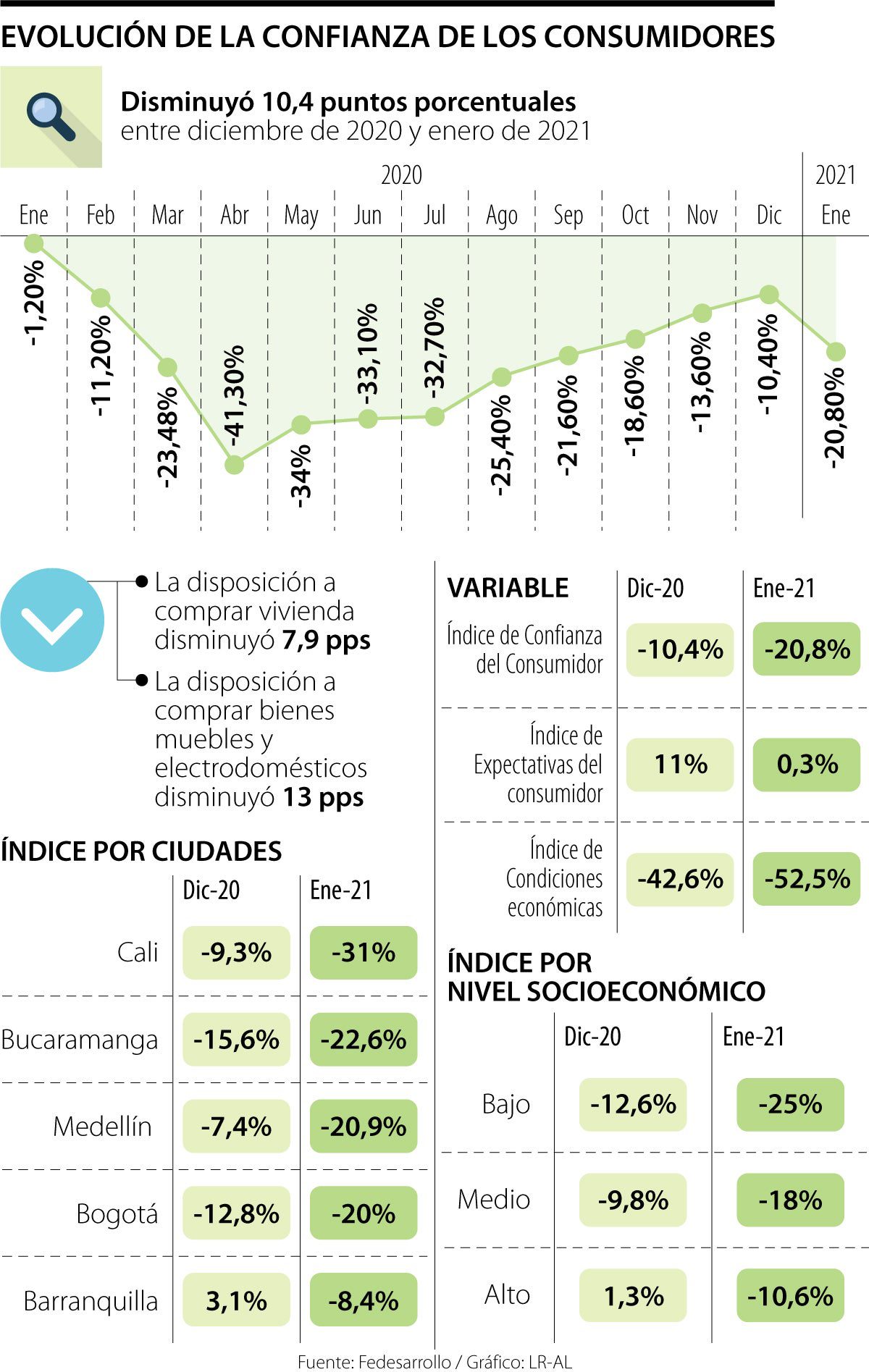 El índice se ubicó en enero en -20,8%, resultado que estaría explicado por las restricciones en la movilidad y en la actividad productiva. Fedesarrollo publicó...