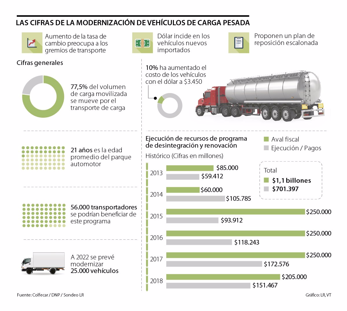 El directivo indicó que con esta medida las “empresas de transporte podrán tener las mismas condiciones, tales como el acceso a las líneas de crédito definidas para el programa”. A su vez, “venderles a los pequeños propietarios vehículos con cuatro o siete años de uso, que están en muy buen estado”. En concreto, esta iniciativa le permitiría a los pequeños camioneros no incurrir en mayores gastos por efecto de la tasa de cambio. Esto debido a que, según Henry Cárdenas, presidente de Fedetranscarga, la devaluación del peso ha sido inmediata. “Una tractomula que antes costaba US$130.000, ya ha incrementado su valor casi 10%. En términos generales, son fácilmente $40 millones. Con el dólar a $3.500, los costos reales se ven afectados y más porque se importa principalmente de Estados Unidos y México”. Y es que de cumplirse las expectativas y flexibilizar el proceso, en los próximos cinco años se modernizarían hasta 25.000 automotores, según el Ministerio de Transporte. Esta cifra, si bien sería un poco menos de 50% de la totalidad del parque automotor que lo necesita, tendría un impacto positivo en materia de productividad, ambiente y movilización de carga. Así lo destacó hace un par de semanas el viceministro de Transporte, Juan Camilo Ostos, quien resaltó que con este programa se “busca reducir drásticamente el impacto negativo de las emisiones de gases efecto invernadero en la atmósfera (…). Así mismo, contribuiremos para el ahorro de costos, emprendimiento y mayor productividad del transportador”. Se estima, según la cartera de Transporte, que actualmente el parque automotor de carga tiene una vejez promedio de 21 años. Con estas cifras, los gremios proponen que los propietarios de los vehículos no tengan el compromiso de comprar un tractocamión nuevo, sino uno usado con hasta 10 años de uso. Lo anterior permitiría que se pueda lograr una rotación eficiente, pues serían las empresas quienes impulsarían a los propietarios a renovar los vehículos.