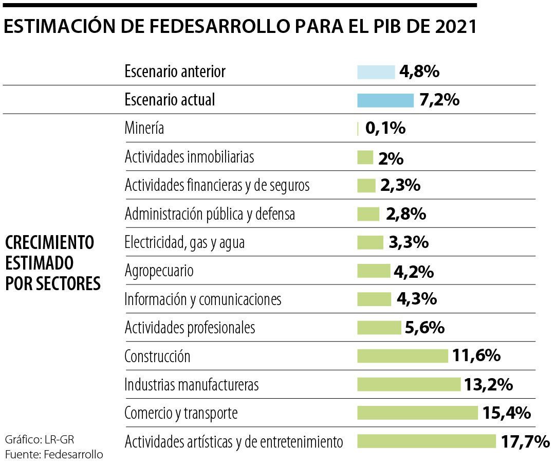 Los cálculos del centro de pensamiento indican que la recuperación económica estaría liderada por los sectores de comercio, transporte y alojamiento; industrias manufactureras; y construcción, que en conjunto aportarían 4,4 puntos porcentuales al crecimiento del PIB este año.
