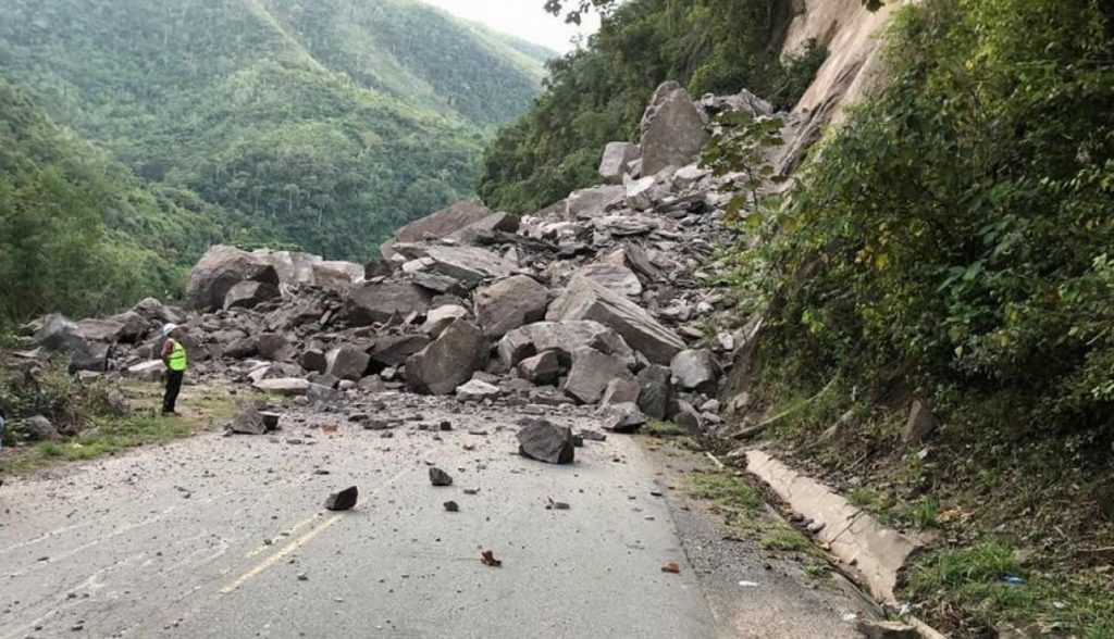 La afectación se presenta, en el Kilómetro 56 de esta vía nacional. A esta hora, maquinaria amarilla se dirige hacia este sector.