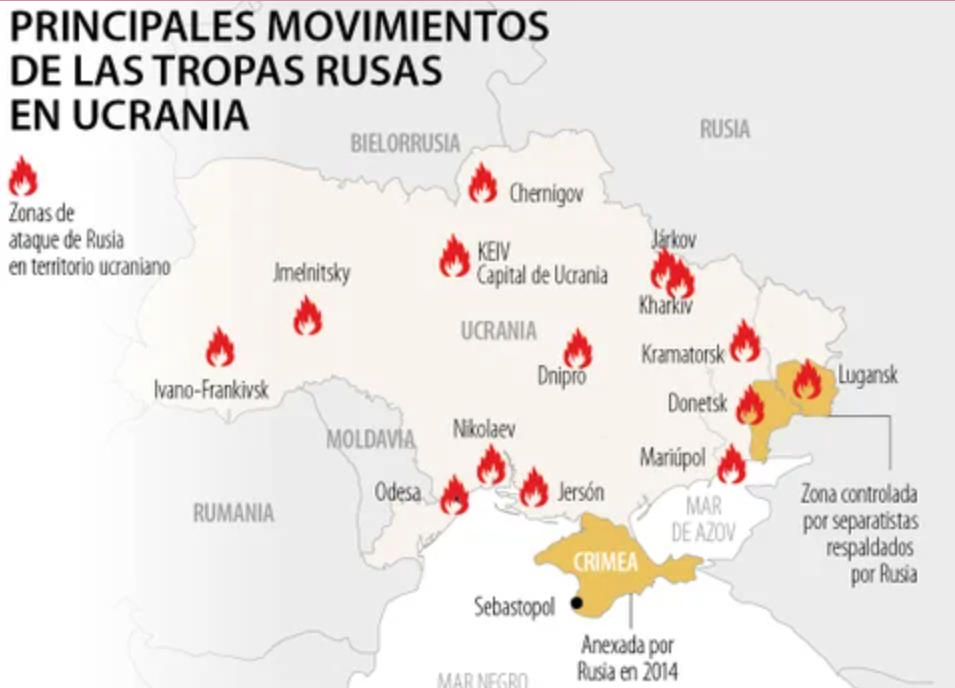 La campaña militar de Rusia marca la continuación de una política que ha visto a Putin expandir constantemente la esfera de influencia del país, reafirmando el dominio de Moscú sobre las ex repúblicas soviéticas como Bielorrusia , Georgia y Moldavia. Sin embargo, Ucrania se encuentra en el flanco occidental de Rusia donde, históricamente, ha sido más vulnerable a los ataques.
