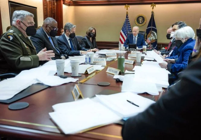 El viernes por la noche, Zelensky publicó un video de sí mismo parado frente a la sede presidencial en el centro de Kiev con su jefe de gabinete, el primer ministro del país y el líder de la mayoría parlamentaria, todos vestidos de faena. “Estamos todos aquí, defendiendo nuestra independencia y nuestro estado. Y así será”, dijo, mientras los medios rusos difundían rumores de que había huido de la ciudad.