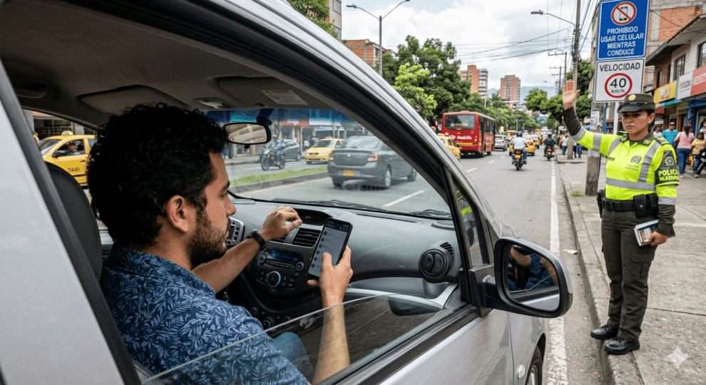 Las autoridades también advierten que llevar el celular en las piernas constituye una infracción, incluso si no se está manipulando directamente. En estos casos, un agente de tránsito puede imponer la multa correspondiente, tipificada como C38, que asciende a 633.200 pesos colombianos.