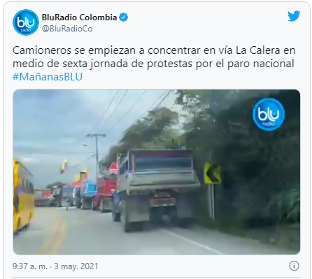 Camioneros se empiezan a concentrar en vía La Calera, cerca de Bogotá