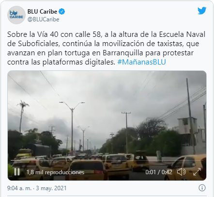 Protesta de taxistas de Barranquilla se mueve por la capital del Atlántico