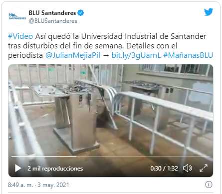 Así quedó la Universidad Industrial de Santander tras fuertes disturbios