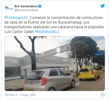 Transportadores realizan caravana hacia el centro de Bucaramanga