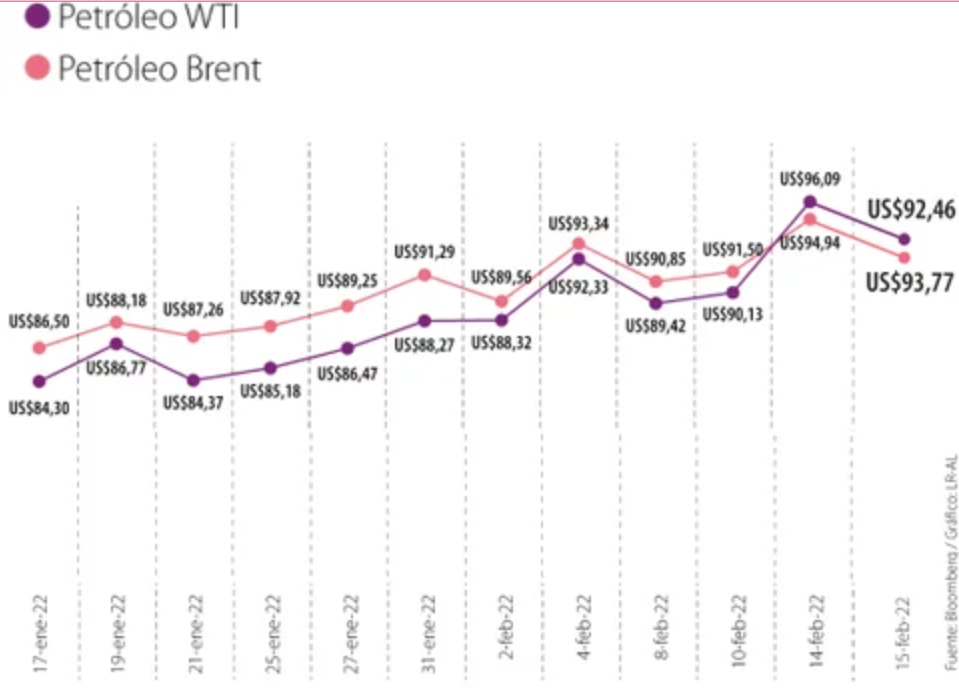 El crudo ha oscilado violentamente esta semana en medio de una serie de informes sobre las tensiones en Ucrania. Si bien Estados Unidos advirtió que una invasión puede ser inminente, Moscú ahora pide un enfoque diplomático y ha negado repetidamente que planee un ataque.