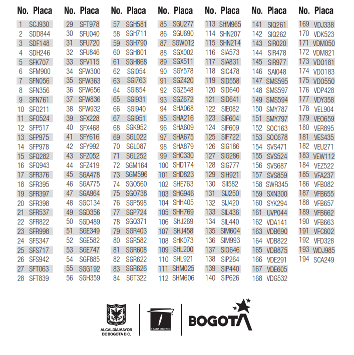 Por lo anterior, el Distrito está buscando a los propietarios de estos 194 vehículos, que no fueron vinculados a ninguna de las concesiones del Sitp en 2009, año de creación del Sistema Integrado de Transporte Público de Bogotá.
