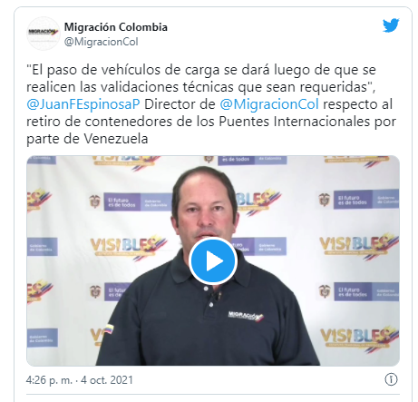 “Una cosa es eliminar la presencia de contenedores y otra reabrir el paso. Es ideal que se dé un proceso organizado, juicioso, como lo hemos hechos desde Colombia, privilegiando a las miles de personas que necesitan movilidad transfronteriza”, comentó Juan Francisco Espinosa, director de Migración Colombia.